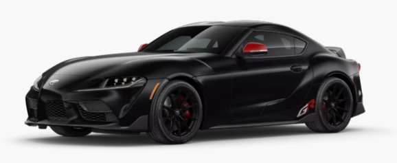 このGRスープラのエクステリアは、ダックテールカーボンファイバー製リアスポイラー、フロントホイールアーチフラップ、そして高めのフロントタイヤスパッツなど、エアロダイナミクスの強化が施されています。ファイナルエディションには、19インチのマットブラックホイールとグロス仕上げのカーボンファイバー製サイドミラーキャップも装備されています。トヨタはスープラのキャビンにもこだわり、アルカンターラのレザートリムを施し、GRロゴが刺繍されたフロントシートを装備しています。シフトノブ周辺には赤いステッチがアクセントとなり、赤いシートベルトがキャビンのスポーティな雰囲気を高めています。